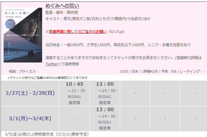 3/5(金)以降も上映スケジュールが埋まるよう、ご協力をお願いします。
